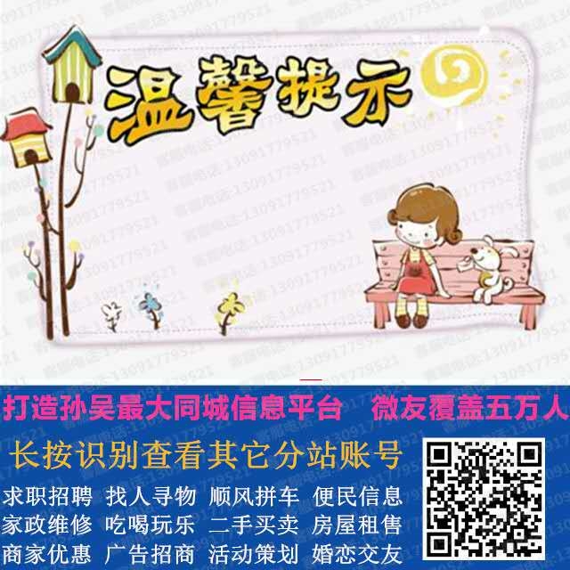 孙吴同城信息联盟 客服微信大全!如有其它账号取名“孙吴同城信息″实施各种行为,皆与以上账号无关!